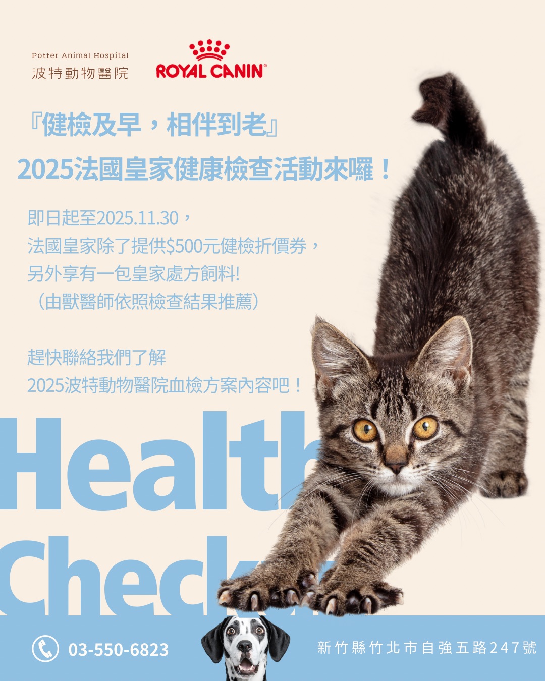 即日起到11/30,法國皇家健康檢查活動,折扣500+獸醫師推薦飼料一包