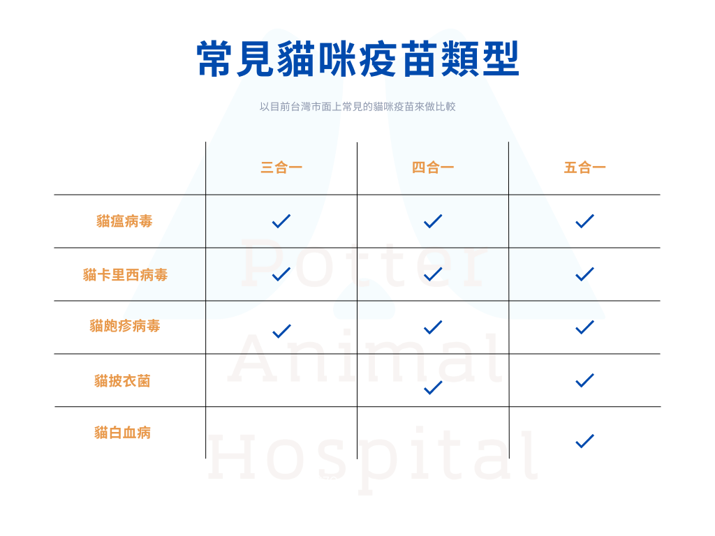 -貓咪疫苗包含核心疫苗(三合一)與非核心疫苗(四合一和五合一)及狂犬病